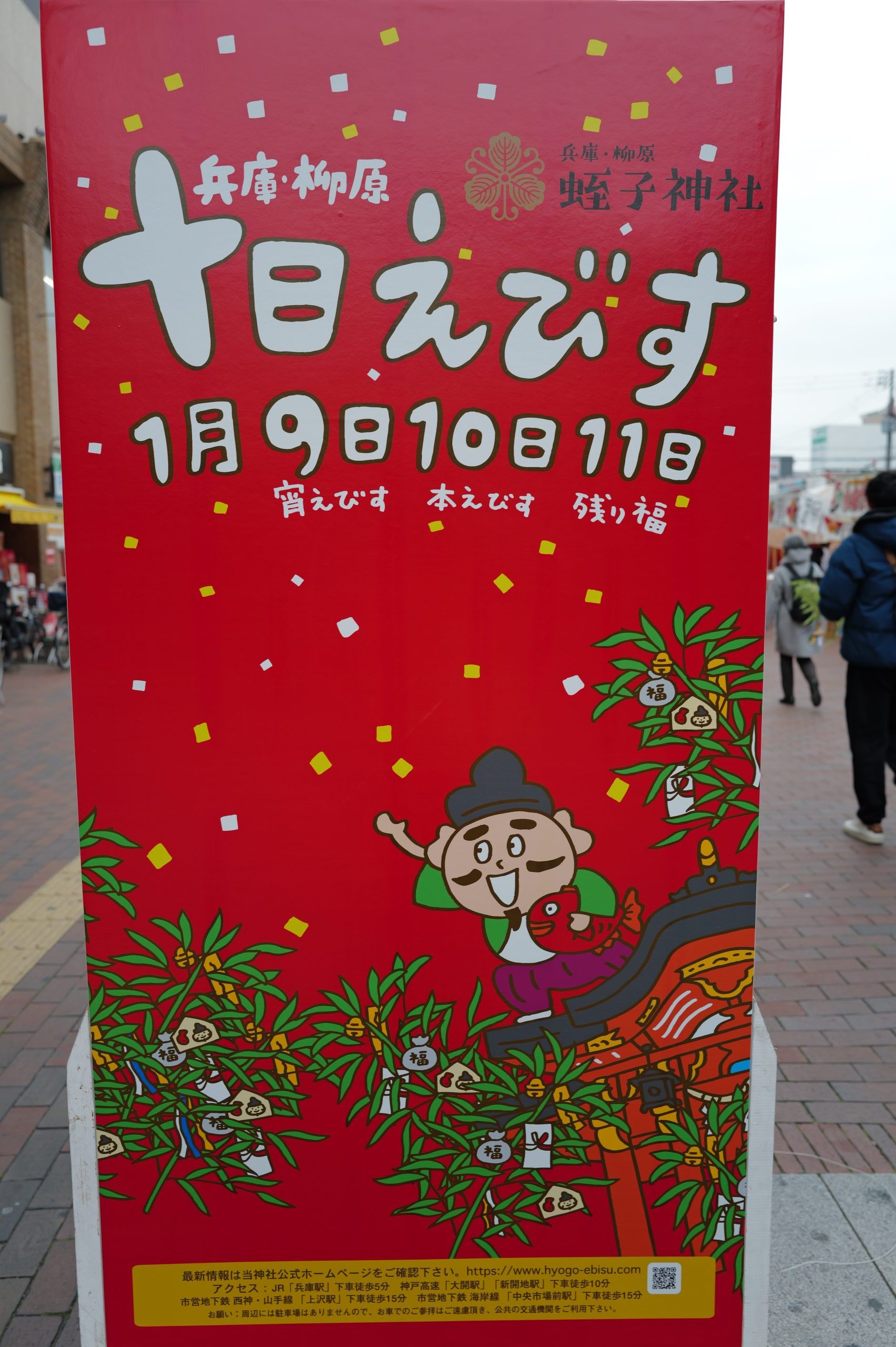 場所は神戸市にある蛭子神社。JR兵庫駅を下りると直ぐだ。駅前にはこの看板が多数あり私たちを迎えてくれる。