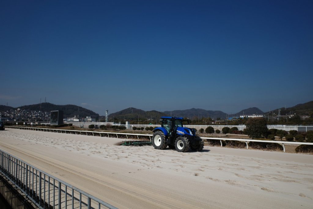 馬場を整備するトラクターも間近で見る事が出来る。